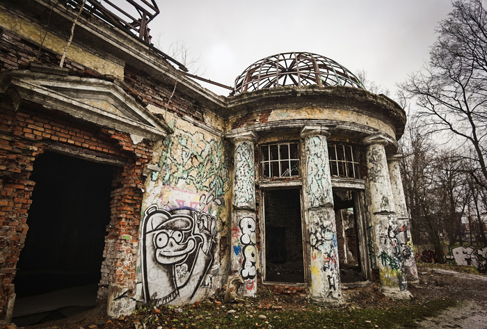 Эта заброшка в Удельном парке памятником архитектуры не является, несмотря на то, что внешне ее можно принять за старинную усадьбу.