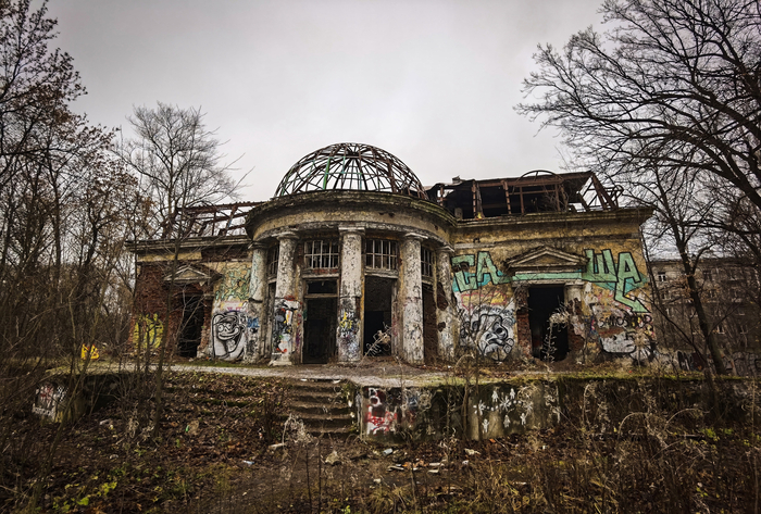Состояние, конечно, мертвецкое. Но если будете гулять мимо, заглянуть посмотреть со стороны - интересно. Внутри очень опасно. А как вы считаете, есть смысл восстанавливать такую архитектуру, когда она уже совсем в плачевном состоянии? Или проще сносить?