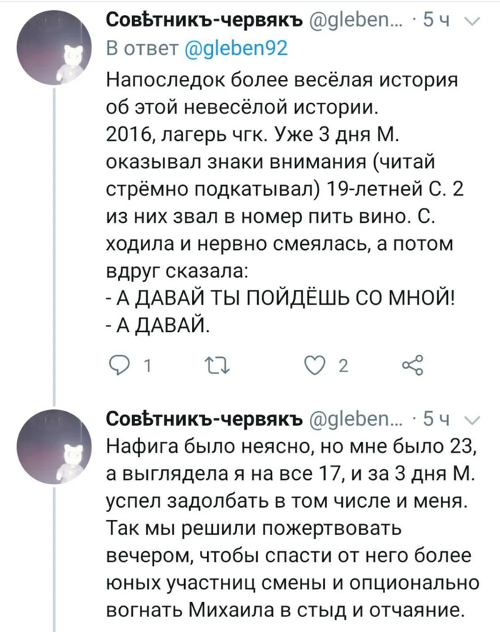 «… обвинительницы в сексуальных домогательствах дружно забирают из судов свои заявления. Завершение судебных разбирательств стало закатом целого движения “Me Too”.» (7дней.ру)