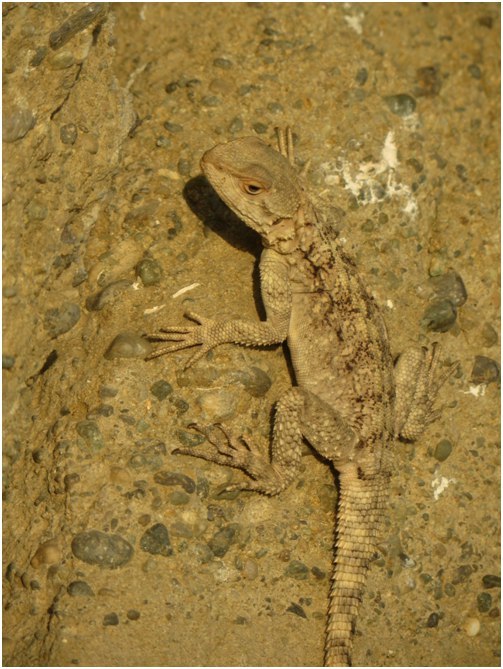 И вот этот вид настоящего момента, заставляющий каждый раз снова и снова идти вверх – бескрайняя долина Азейбарджана, проходящая внизу грузинско-азейбарджанская граница, отмеченная часто повторяющимися столбиками, пасущиеся вдалеке стада животных, теплый свет опускающегося к горизонту Солнца. Под нами те самые древние скалы с фресками, где раньше жили не менее древние монахи. Их столько, что мы все и не успеем обойти. Местами они располагаются в несколько этажей. Самые интересные фрески и несколько больших ящериц мы рассмотрели и ушли вкруговую через вершину холма, отмеченную столбом и каменной беседкой. На спуске я каким-то чудным образом подвернула ногу и содрала кусок кожи с большого пальца о твердый грунт. Зрелище не очень, на полномочиях врача Андрей сорвал какое-то неизвестное никому растение, разжевал и приклеил к пальцу на пластырь.