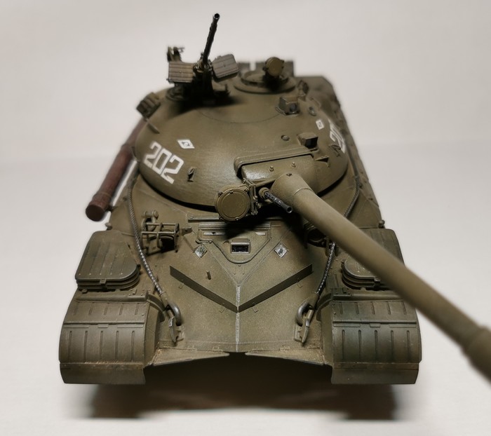 Модель советского тяжелого танка Т-10М от фирмы Meng (каталожный номер TS-018) в масштабе 1/35. Фотографии прототипа в различных источниках имеются, но принадлежность машины не указана. Потрясающий набор, отличная детализация и стыкуемость всех частей. Ходовая часть полностью рабочая: катки и ведущие колеса вращаются, наборные гусеницы свободно перематываются, торсионная подвеска обрабатывает неровности. Декали довольно сложные в работе (очень тонкие, плохо отрываются от подложки), однако привариваются намертво и без серебрения, не выступают над поверхностью, можно даже не покрывать дополнительным слоем лака. В сборке использовался точеный ствол от Magic Models, поручни сделаны из проволоки диаметром 0,3 мм. При сборке и окрасе допущено несколько косяков, машина очень длинная и ее неудобно фотографировать, однако, в целом, получилось неплохо. Модель покрыта грунтом Mr.Surfacer 1000 (серый), окрашена спиртовыми акрилами Tamiya и HobbyColor, смывка Tamiya Panel Line Accent Color темно-коричневая и черная, использованы пигменты Tamiya Weathering Master и Abteilung 502.