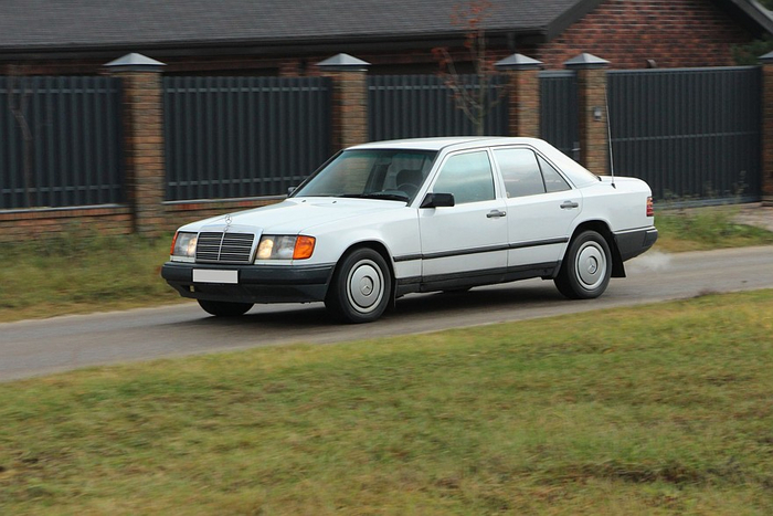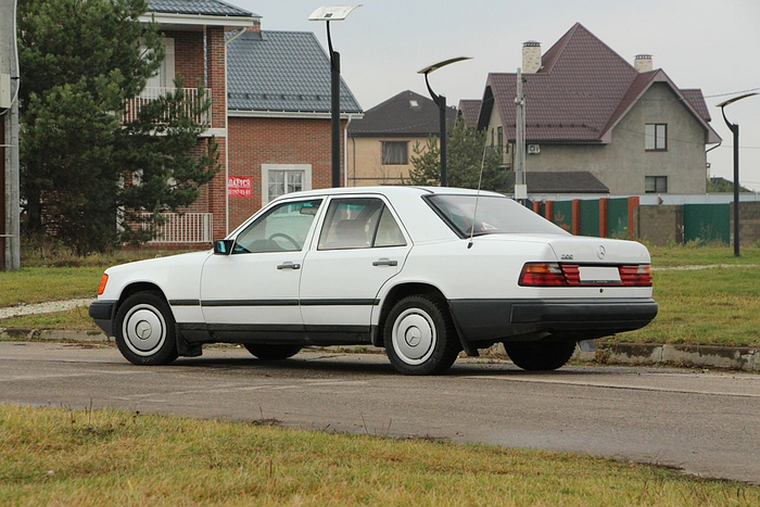 Даже в 90-х годах 124-й кузов выглядел стильно и актуально, а уж в момент своего дебюта сорок лет назад… уверен, во время премьеры нового поколения Е-класса в Мюнхене попадала не одна челюсть. Да что там: даже сегодня этот седан Mercedes 200E в базовом исполнении с пластиковыми колпаками колес в белом цвете смотрится основательно и элегантно.