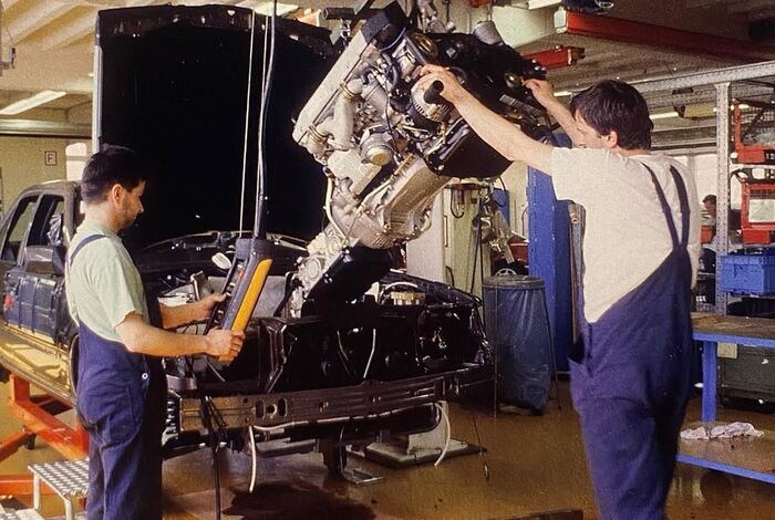 Производство Mercedes-Benz W124 500E.