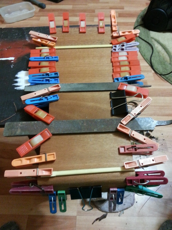 Дальше будет смешно, но обжимать гнутую заготовку мне пока нечем. Пуансоны(вроде так называются) мне пока не доступны. Главное в этом квесте отжать у жены нужное количество прищепок.