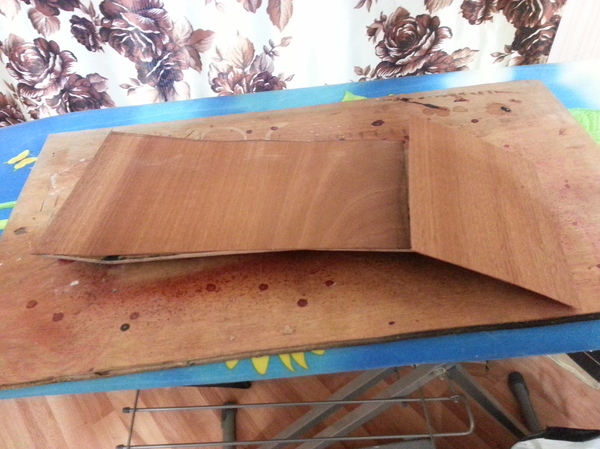 Шпонировалась деталь сложной формы. Пришлось брать более тонкий шпон в 0,8 мм. До этого работал с толщиной в 1мм.