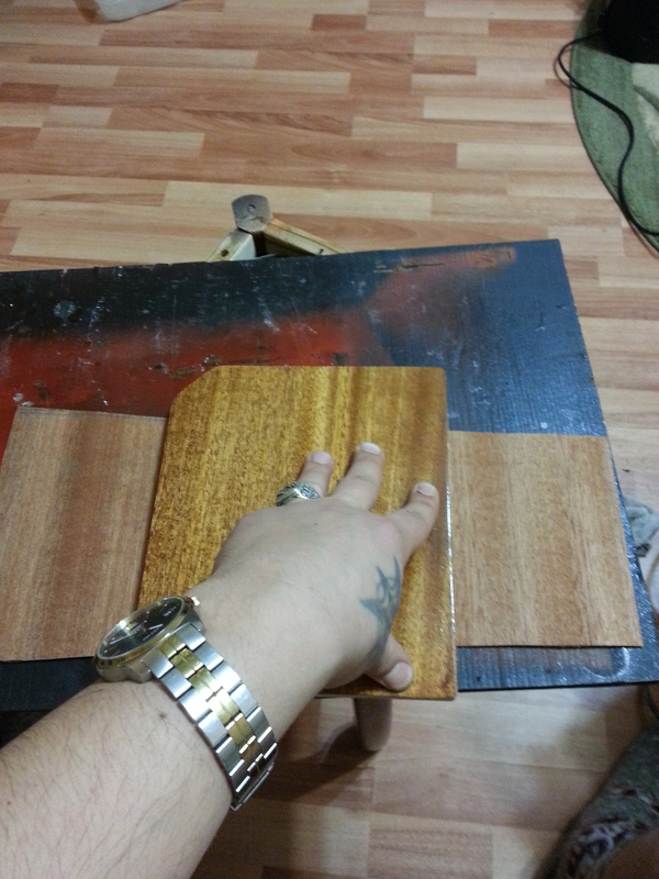 Опыт работы с автолаком был при покраске машины, а вот с лаком по дереву столкнулся впервые. Самые сложные элементы еще впереди.Шпон нужно гнуть на 120-130 градусов. Думаю получится. Если кому понравится выложу остальные деревяшки, как сделаю.