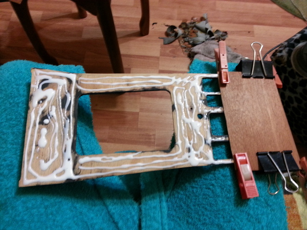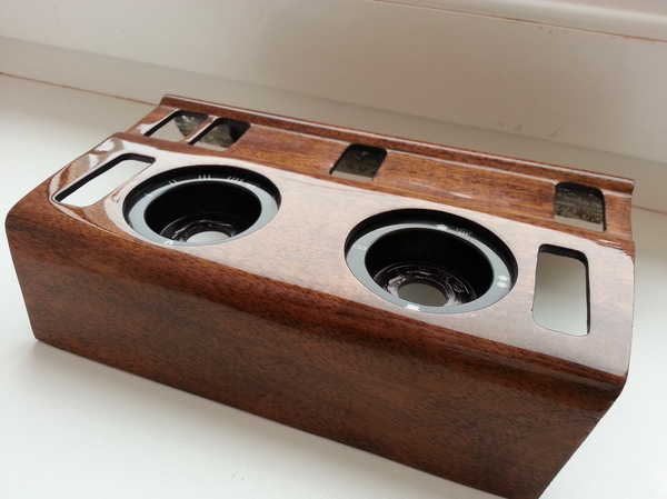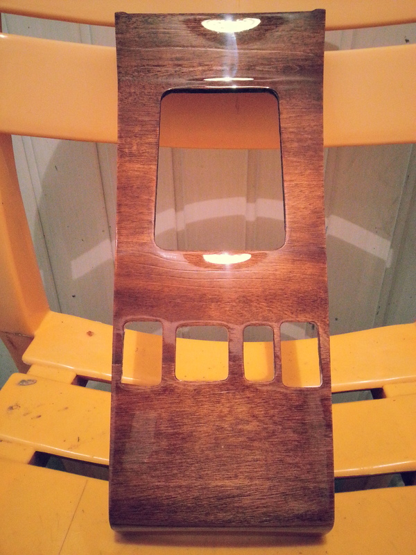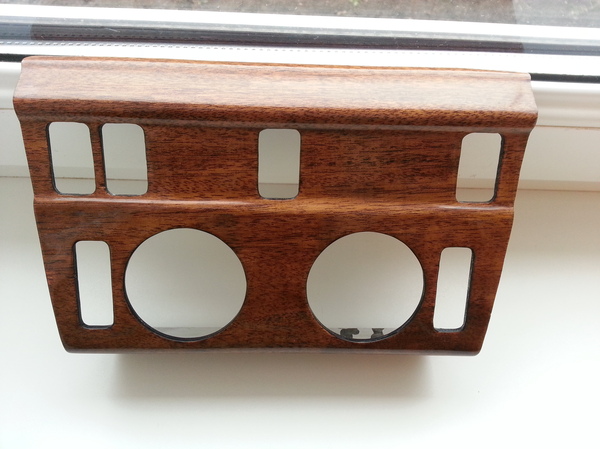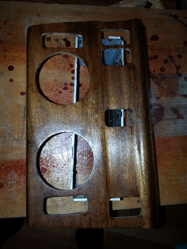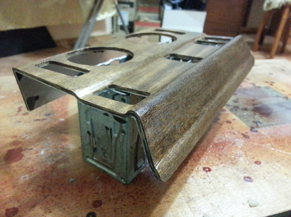 Уже почти  готовая деталь. Фоток процесса нет, при работе было запорото два куска шпона. Пытался обжимать по мокрому, при высыхании рвало шпон. При помощи утюга получалось чуть лучше но появлялись трещины и результат не устраивал.