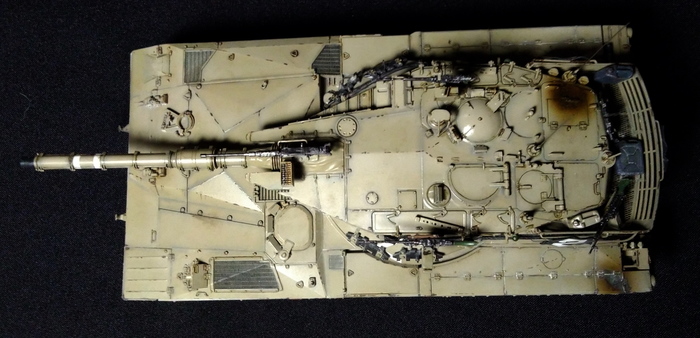 Окрашены (преимущественно кистью) и расположены на своих местах детали цветов, отличных от базового. Танк уже выглядит живее.