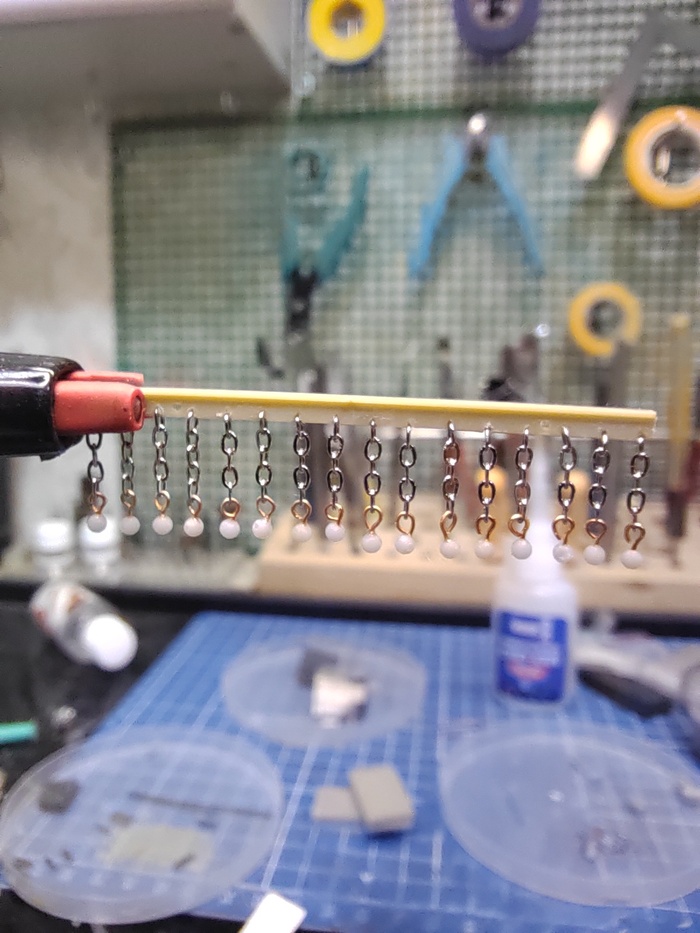 Долгая и кропотливая работа с башней... Тут показан процесс сборки тросов.