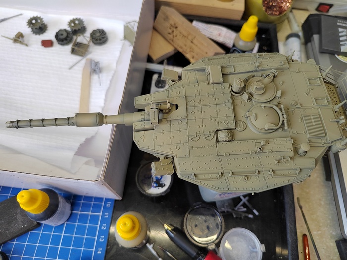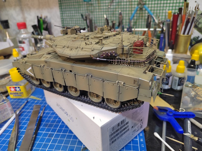 Добрый день, уважаемые подписчики, коллеги-моделисты и просто читатели! На Новый 2019-й год я сделал себе дорогой подарок - модель танка Меркава от "Таком". В те времена я красил модели только кистью и работал с моделями преимущественно от "Звезды", потому качественный, сложный набор с фототравлением, металлическим тросом и прочими прелестями поверг меня в трепет. Я мудро сообразил, что пока не готов заниматься Меркавой, потому как очень не хотелось испортить такую модель, к тому же одного из самых моих любимых танков. С тех пор у меня появился аэрограф и существенно расширился выбор модельной химии, я овладел новыми для себя приёмами и даже сделал одну модель такой же расцветки. И вот, спустя примерно 15 месяцев после покупки, я закончил работу над израильским ОБТ...