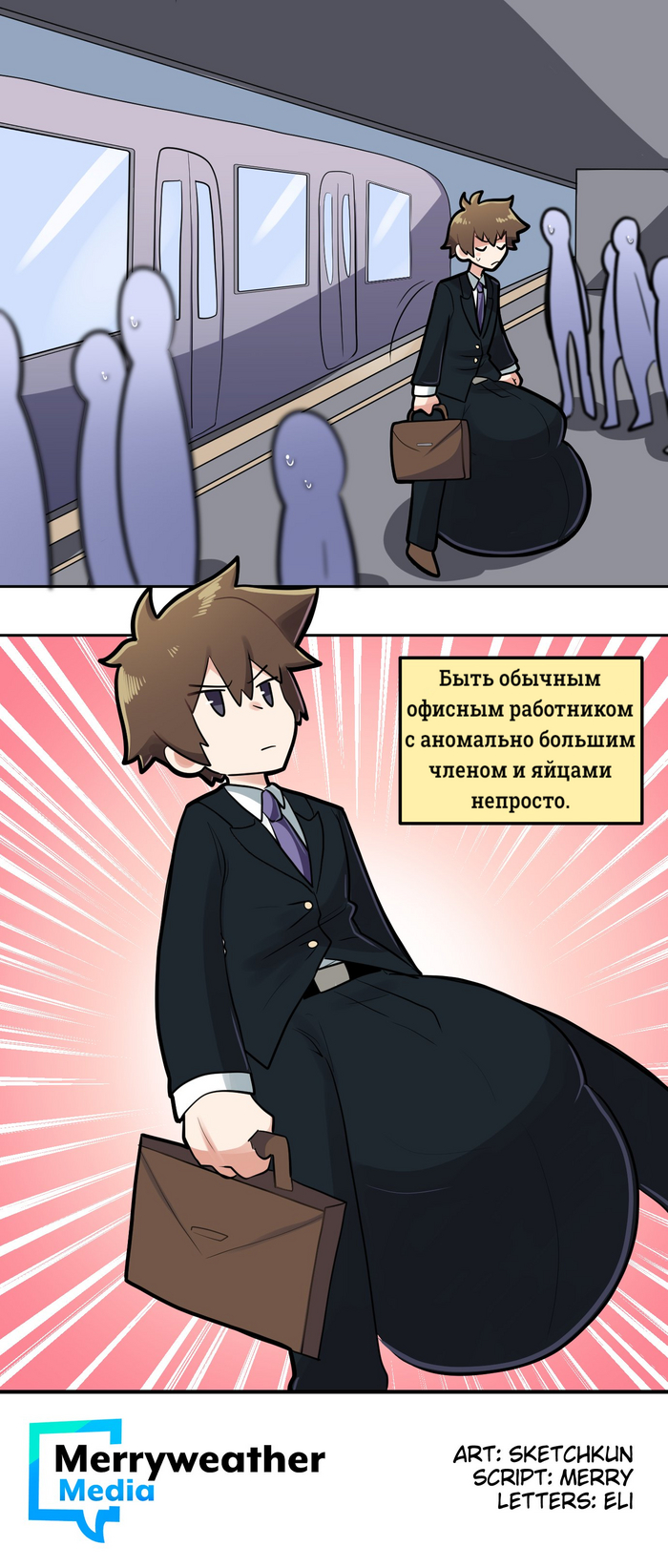 Повседневная жизнь офисного работника с аномально большим членом и яйцами