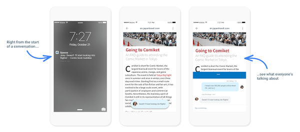 Google разработала новый мессенджер Spaces для переписки, сделав упор на общение в тематических группах. По версии разработчика так удобнее всего обмениваться фото и видео, делиться интересными статьями. В это приложение встроены сервисы Google: поиск, YouTube и Chrome. Так что не придется запускать приложения, выходя из программы, все продумали.