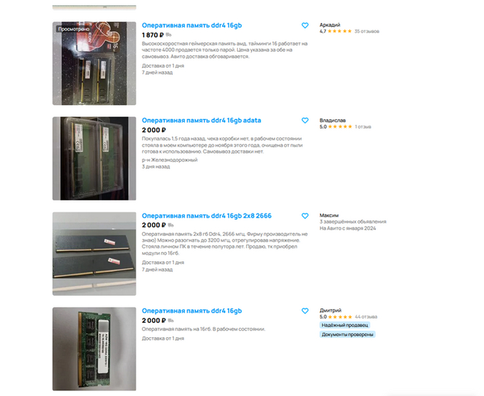 DDR4 16 GB (2 плашки по 8 гигов в двухканальном режиме) обойдется в 2 тысячи.