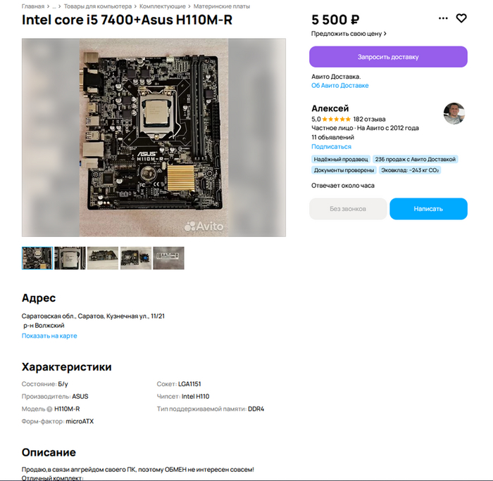 В общем и среднем, если не впадать в крайности, я бы определил цену за связку мать + проц в районе 4-4.5 тысяч рублей. Хотя, если бы у меня была цель экономить каждый рубль, занялся бы охотой и безудержными торгами на авито 😊 Проц не горячий – супер кулеры сюда не нужны. Боксового нам хватит с головой, он обойдется в пару соток (если его не будет в комплекте связки).