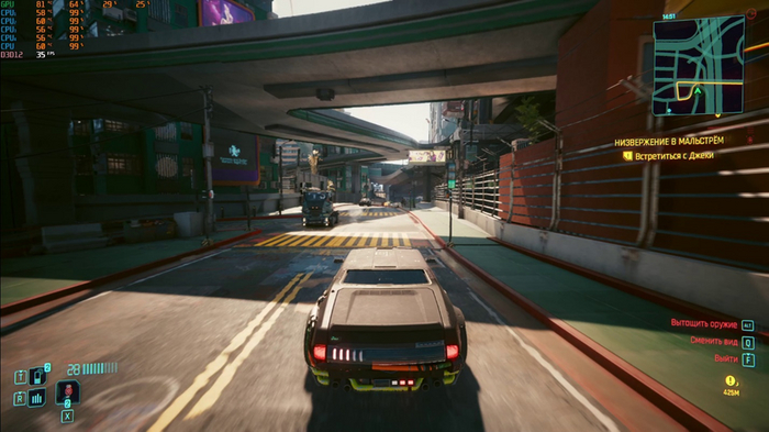 На ультре были совсем уж грустные 42 FPS, поэтому принято решение пробовать играть на высоких. И вы знаете, а вполне себе! В некоторых локациях города FPS просаживается и периодически показывает и 30 и 40 FPS. Понятно, что супер плавности мы тут не ждем. Но еще раз. Это сборка из 2017-2018 годов и её стоимость на текущий момент 200 баксов, а то и того меньше, если сильно заморочиться 😊 Как мне кажется, это просто бомбический вариант. Сколько сейчас школьнику дают на булочки в столовой? Рублей 150? Вполне себе можно набрать, если очень хочется поиграться по вечерам.