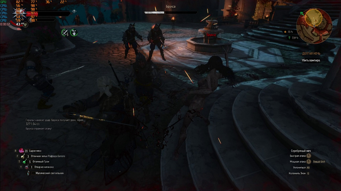 В ведьмаке сборке откровенно тяжело. Я выставил высокие настройки, но оптимально тут играть на средних. Процессор и видеокарта постоянно шарашат на максимум, при этом в городах просадка по FPS до 30-35 FPS. О супер плавности картинки тут и речи нет, хотя играть можно. Но тут я снова вспоминаю цену системного блока и мои претензии улетучиваются.