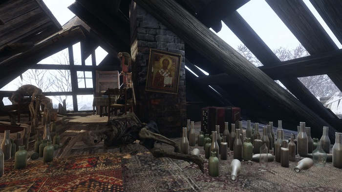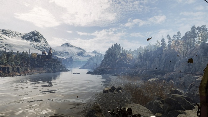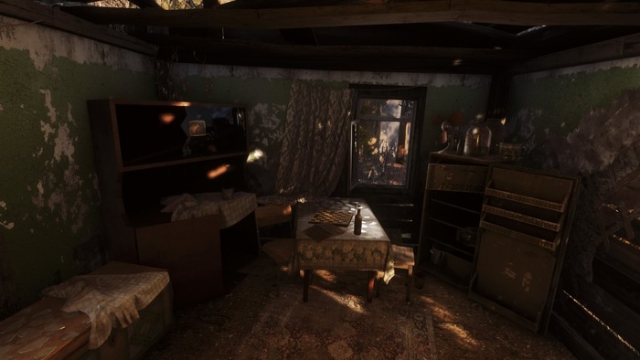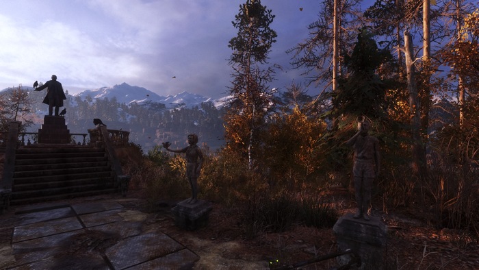 Сильнее всего на этом уровне цепляет именно окружение. Лес тайги настолько густ и тёмен, словно в нём можно потеряться, яркие лучи солнца приветливо играются на широкой речной глади, пожухлыми листьями разукрашены ветви деревьев на фоне чистого синего неба, заброшенная церковь с остатками разрушенного золотого купола и крыши домов, укрытые лиственным ковром. И, хоть я не из тех, кто ностальгирует по СССР, но полуразрушенный пионерский лагерь со всеми выцвевшими советскими агитплакатами, стендами, скульптурами и символикой всё равно произвёл хорошее впечатление, словно это что-то очень близкое и знакомое, раздающееся звонкими отголосками в памяти. Наполнение этой локации располагает к себе, врагов тут не так много, а тех, что есть, можно легко обойти, поэтому здешняя атмосфера ощущается лёгкой и спокойной, родной. И даже мутант-мишка не так страшен посреди такой идиллии.