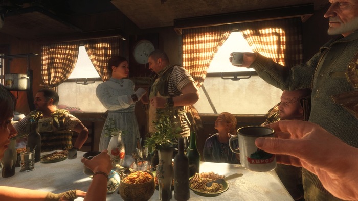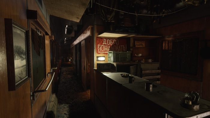Самым приятным местом для меня стал поезд. Приглушённый свет, старый ковёр на стене, по радио играет «Кино», в соседнем купе раздаётся бренчание гитары, душевные шутки и разговоры друзей о жизни до войны. Вся эта ламповость под стук колёс вагона погружает в лёгкую меланхолию, позволяет раствориться в тёплом вечере, сидя за столом с кружкой чая и послушивая радио...