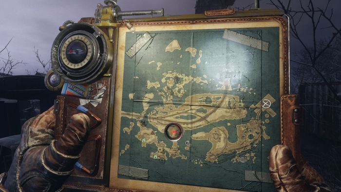 И, говоря о погружении, стоит упомянуть уникальный внутриигровой интерфейс. Все элементы снаряжения, в числе которых есть планшет с дневником и картой с прикреплённым к ней компасом, наручные часы, показывающие отведённое фильтрам в противогазе время, дозиметр и датчик освещённости и отлично справляются с тем, чтобы дать игроку почувствовать себя частью этого мира.