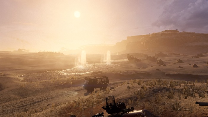 Весенний берег Волги сменяют бескрайние пустыни послевоенного Казахстана с прекрасными алыми закатами, жарким летним дном отступившего Каспийского моря, окружённого скалами и каньонами. Помимо всех запомнившихся по Волге атрибутов в виде советских плакатов и предметов быта, Каспий запоминается лучше всего именно своей непохожим на всё остальное окружение. Например, жилище Гюль на маяке с элементами убранства казахской юрты. А ещё только на этой локации можно свободно кататься на полуразвалившейся буханке, рассекая горы песка и давя врагов.