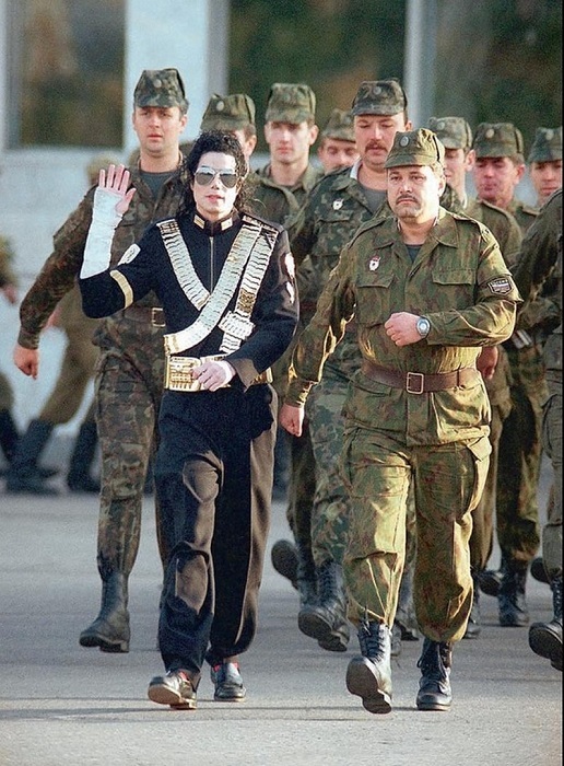 Майкл Джексон марширует с российскими солдатами, 1993 год.