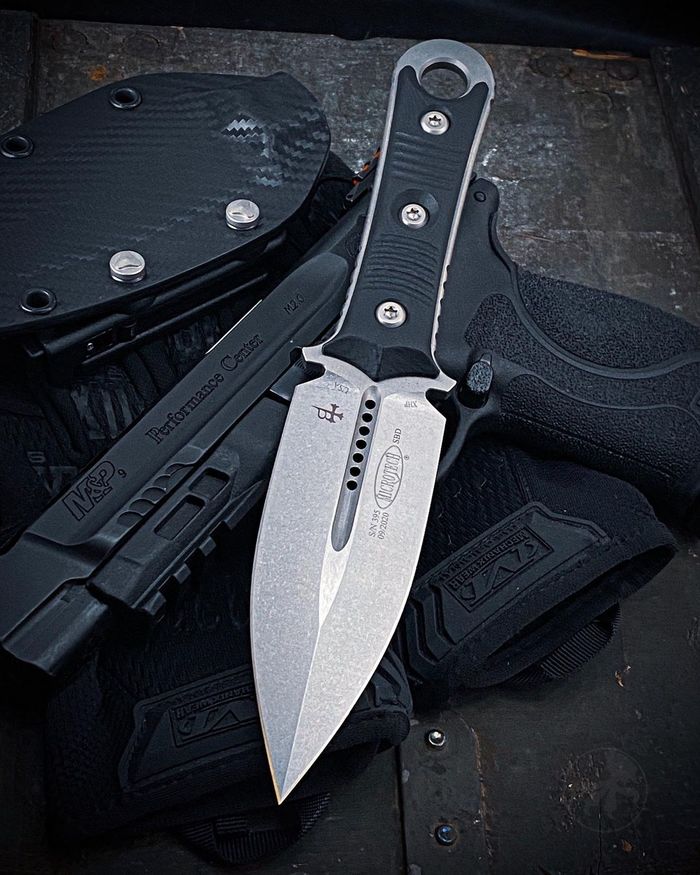 Материал клинка: Для Ultratech Bounty Hunter часто используется премиальная порошковая сталь, такая как Bohler M390, известная своей высокой коррозионной стойкостью и исключительным удержанием остроты режущей кромки.