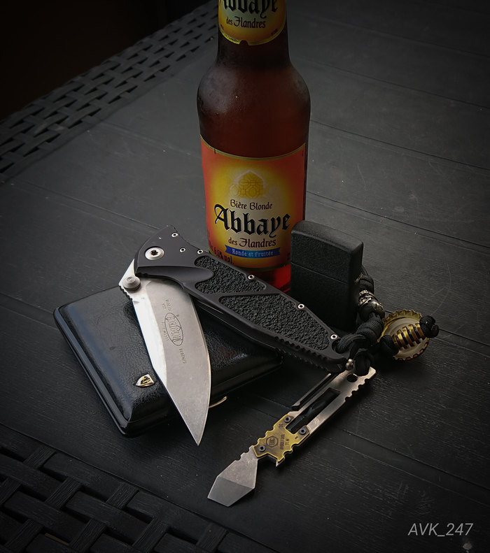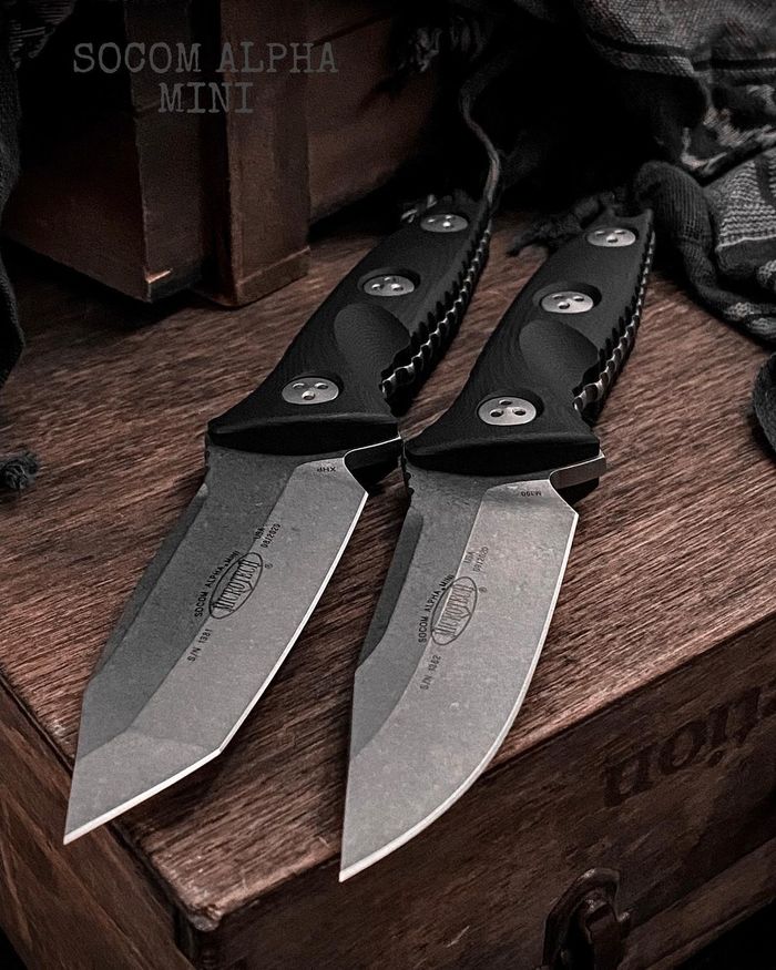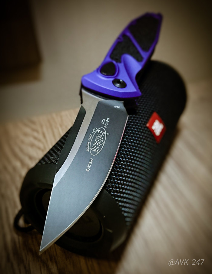 В зависимости от версии, клинок может быть полностью гладким (Plain) или с полусеррейторной заточкой (Partially Serrated).