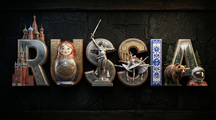 Создаем 3D надпись страны в стильном орнаменте, которые характеризует определенную часть культуры в буквах. Промпт ниже: