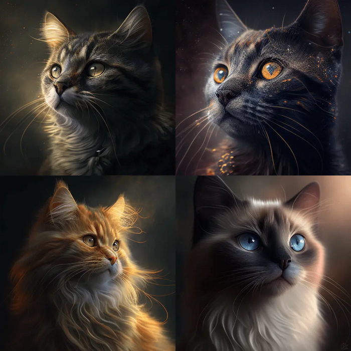 Это проще проиллюстрировать картинками, чем текстом, поэтому посмотрим на котов, сгенерированных нейросетью.