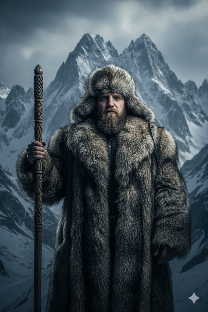 Образ воина эпохи Средневековья, техника масляной живописи, глубокие и выразительные цвета.