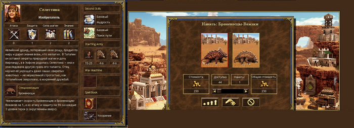 Таким образом, Джадам – это условный Новый Свет. А где Новый Свет, там и аллюзии на колонизацию Северной Америки, выжженные каньоны и пустоши и одиноких ковбоев-стрелков. Отсюда выбор ландшафта, цветовой гаммы и стилистики для фракции. Кстати, если кого и пасли местные cow-boys, то это были не коровы, а броненосцы, существа, встречавшиеся в “Меч и Магия 5”. То есть и тут HotA Crew ничего не выдумали, а взяли уже встречавшихся в играх по вселенной Меча и Магии существ и воссоздали их образ в третьих “Героях”.