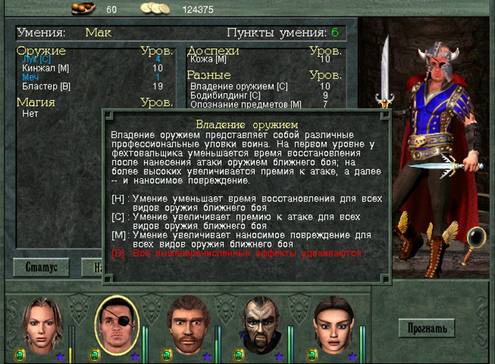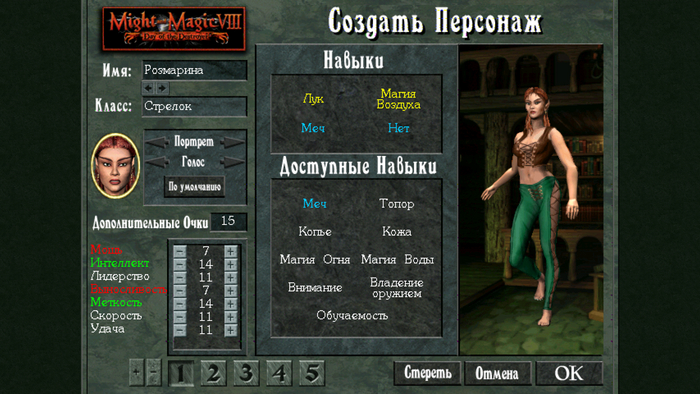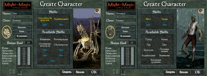 Все остальные характеристики персонажей буду такими, как показано ниже.