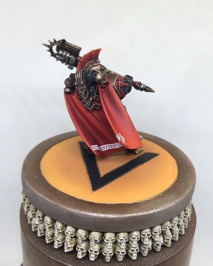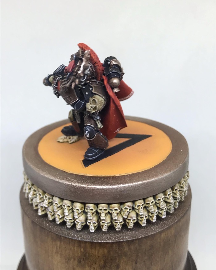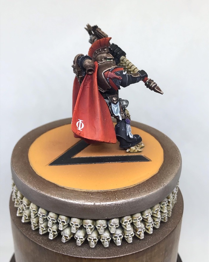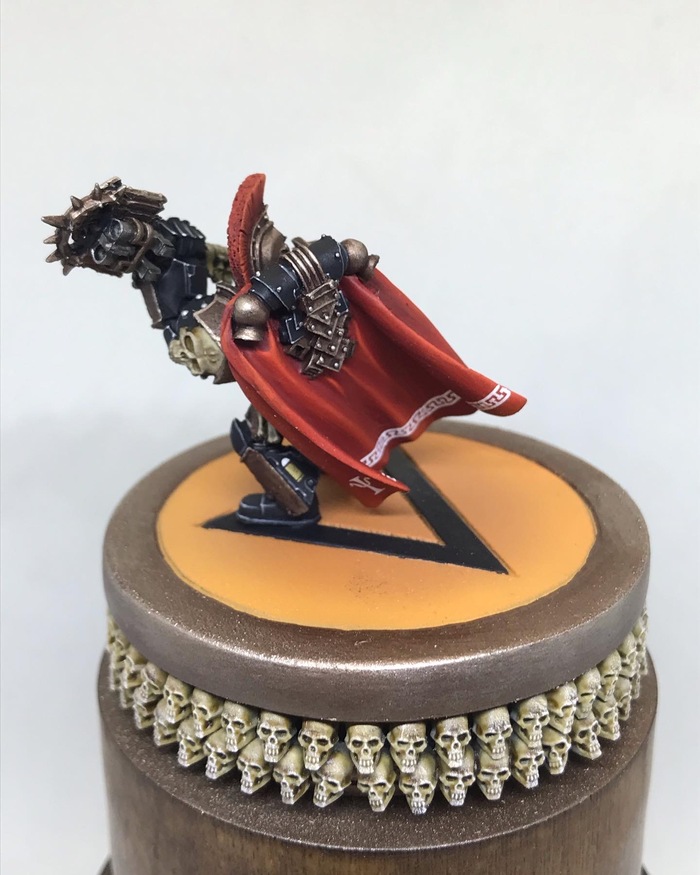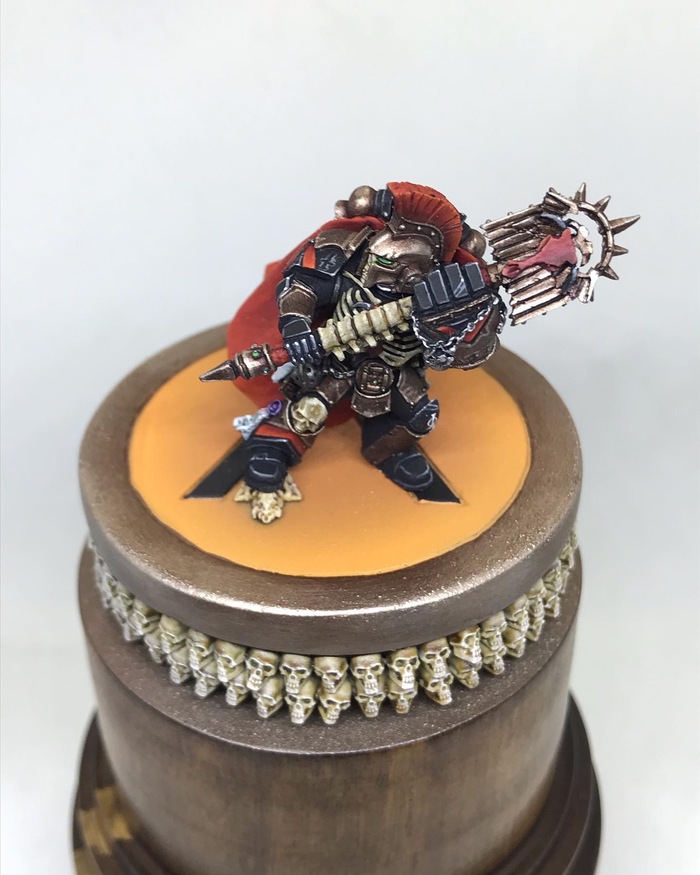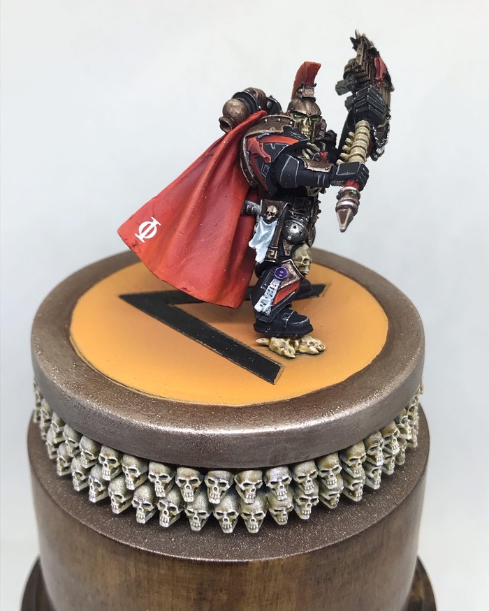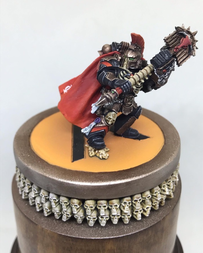 Очередной именной капеллан в коллекцию. В этот раз решил немного повозиться базой. Черепов было, признаться жалко: дорого нынче стоит набор от GamesWorkshop, но получилось, как по мне, довольно интересно. По крайней мере в стиле Ордена Минотавров точно.
