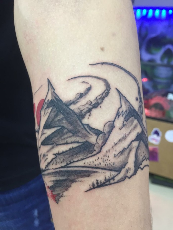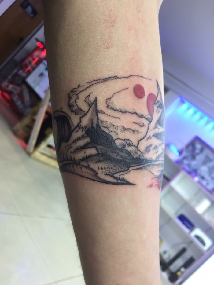 [моё] Тату Горы Браслет Dotwork Эскиз татуировки Эскиз Рисунок карандашом Misty mountains Длиннопост