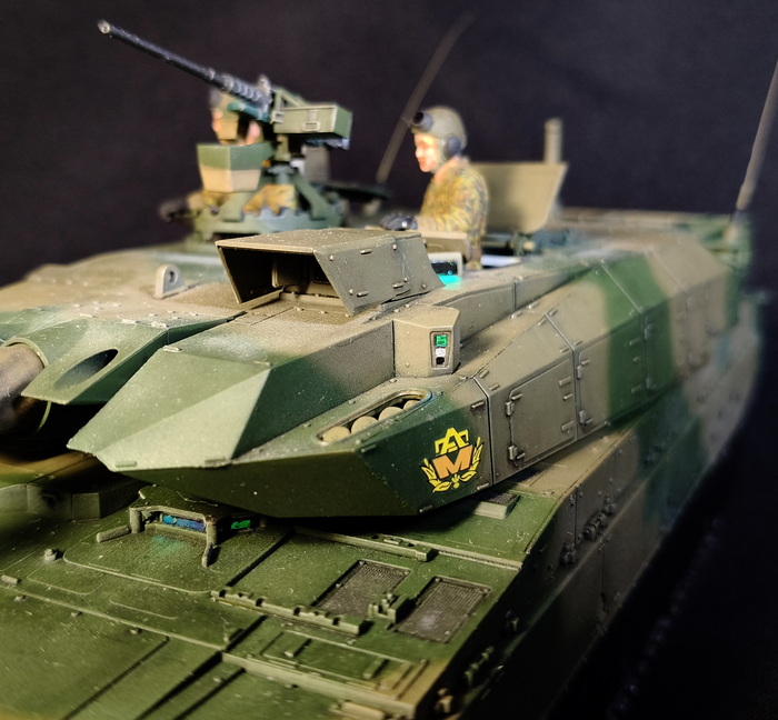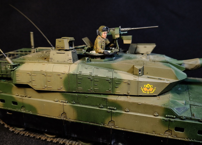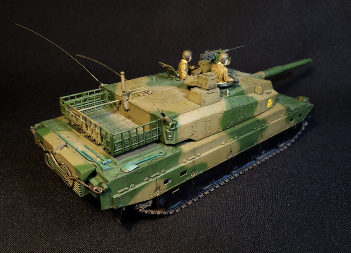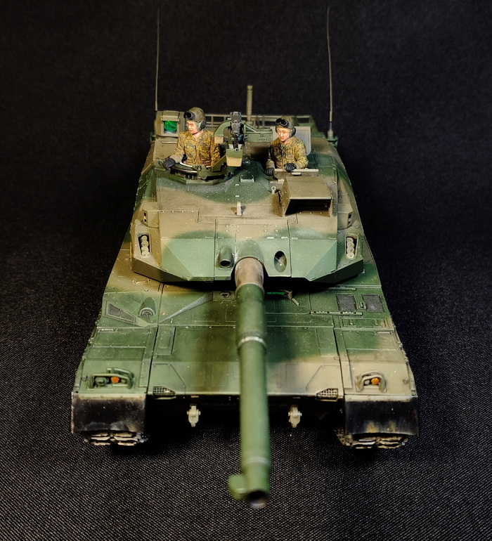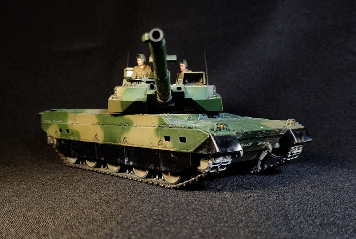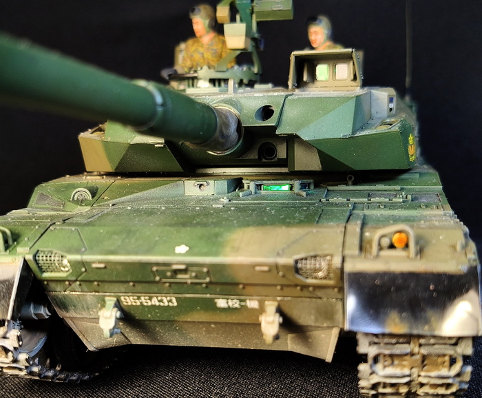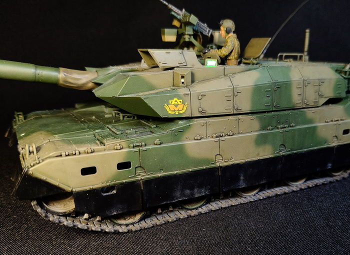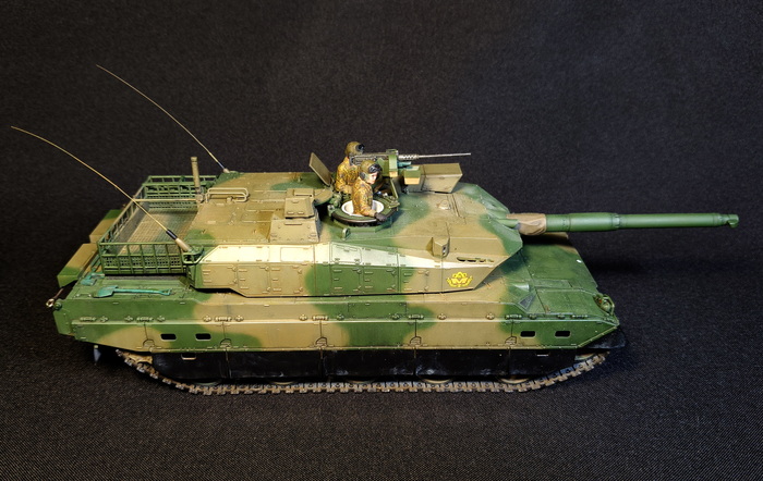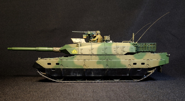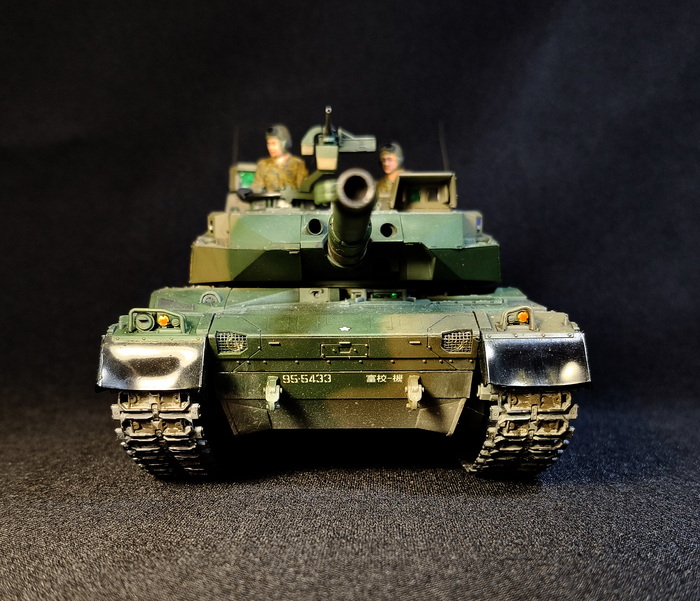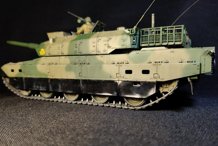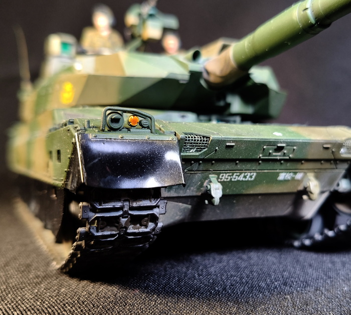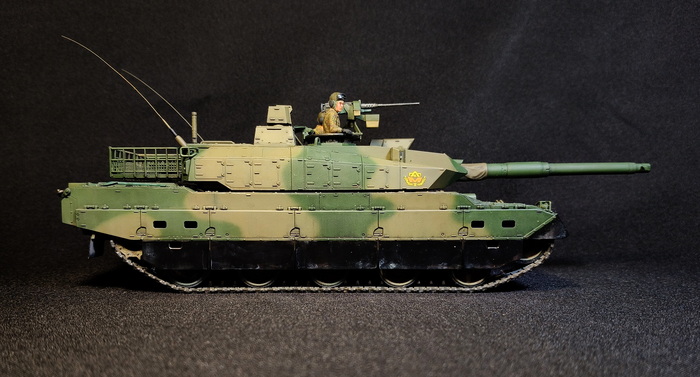 Представлена модель ОБТ Type 10 (Тип 10) в стандартной 44-тонной комплектации из состава 1 Co., Tank School Unit, Fuji School Brigade JGSDF (1-ой роты танкового отделения бригады школы Фудзи), Shizuoka Prefecture, Japan (префектура Шизуока, Япония), март 2024 года. Модель фирмы Tamiya, масштаб 1/35.