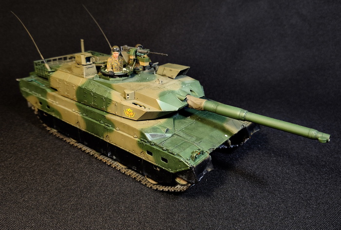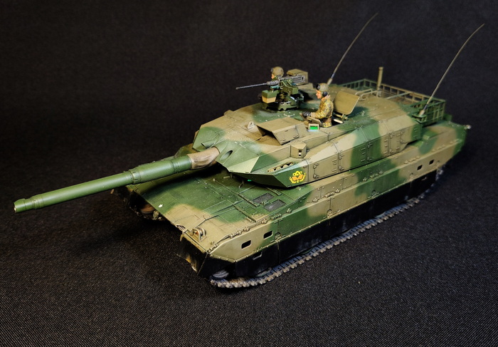 Представлена модель ОБТ Type 90 (Тип 90) из состава 7 Division, 71 Tank Regiment, 4 Company JGSDF (4-ой роты 71-го танкового полка 7-ой Дивизии Сухопутных Сил Самообороны Японии), город Титосэ, остров Хоккайдо, Япония, 2022 год. Модель фирмы Tamiya, масштаб 1/35.