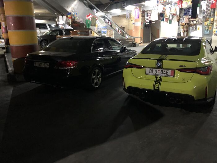 Новая М4 с чешскими транзитами (сам не понял) на парковке ТЦ в Вифлееме