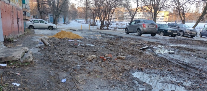 дорога к гаражу лежит через несколько домов где на солнышке растаял снег и идти пришлось по земле