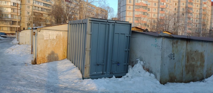 подойдя к гаражу увидел что двери просто так не откроешь и придется для начала откидать немного чтобы открыть одну сторону