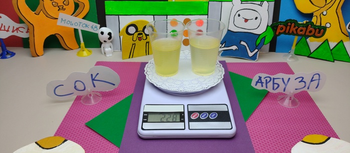 а еще при разборе арбуза у меня осталось немного арбузного сока который так приятно сочился по рукам обливая всё вокруг и его у нас оказалось всего 228 грамм
