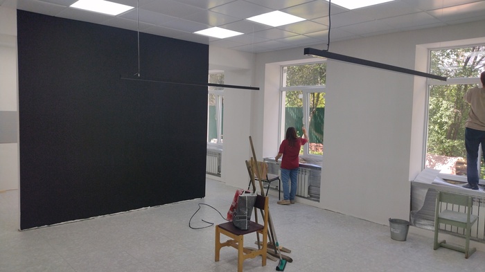 а так как ремонт был в целой рекреации то пришлось попросить своих коллег о помощи ,так как одному подготовить несколько кабинетов нелегко.