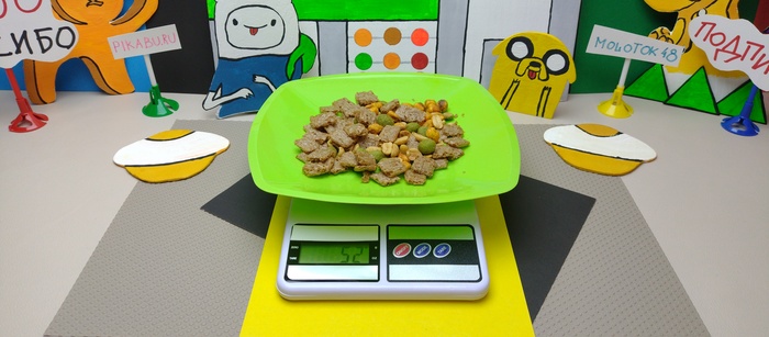 Внутри находился герметичный пакет похожий на тот который выдают космическим рейнждерам правда с тем отличием что на них совсем не было ничего ни наклейки ни надписи где верх где низ, по началу стало даже немного кринжово (вдруг там вместо тушняка ,обычное собачье дерьмо) Но я оказался не робкого десятка и для начала взвесил блестящий пакет и его вес оказался целых 358 грамм .