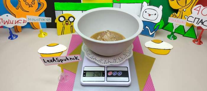 и очень насыщенный бульон который весит 157 грамм что составляет почти столько же что и мясо !