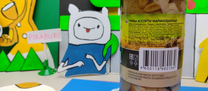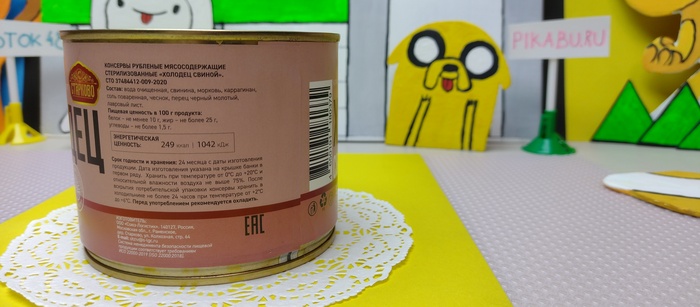 Весит наша банка 525 грамм если верить упаковке, ну а я хватаю скорее целую банку холодца и мчусь поскорее домой что бы узнать ,что же у нас внутри !