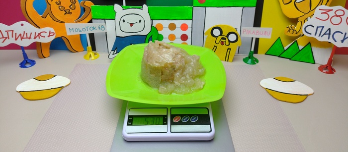 По виду напоминает мазь для подшипников по запаху старое дерьмо с нотками ароматной тухлятины ,первое что захотелось сделать это зажмурить нос потому что этот тошнотворный запах теперь был по всюду. Я сразу вспомнил школьный лагерь из детства ,нам всем по 13 лет мы спим все в одной большой спальне носки не стирались примерно 5 дней.Но сейчас не время придаваться воспоминаниям поэтому что бы снова не потерять сознание от аромата быстро вываливаем содержимое банки на весы и видим что общий вес даже больше заявленное на целых 5 грамм .Хорошо ли это в нашем случае вопрос конечно спорный