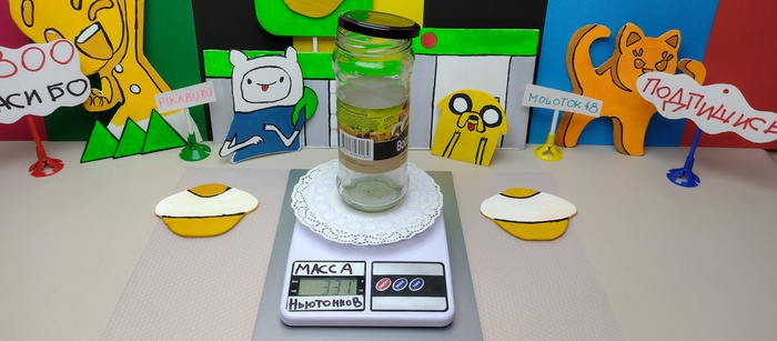Но для начала взвесим целую банку и видим что общий вес составляет аж целых 612 грамм