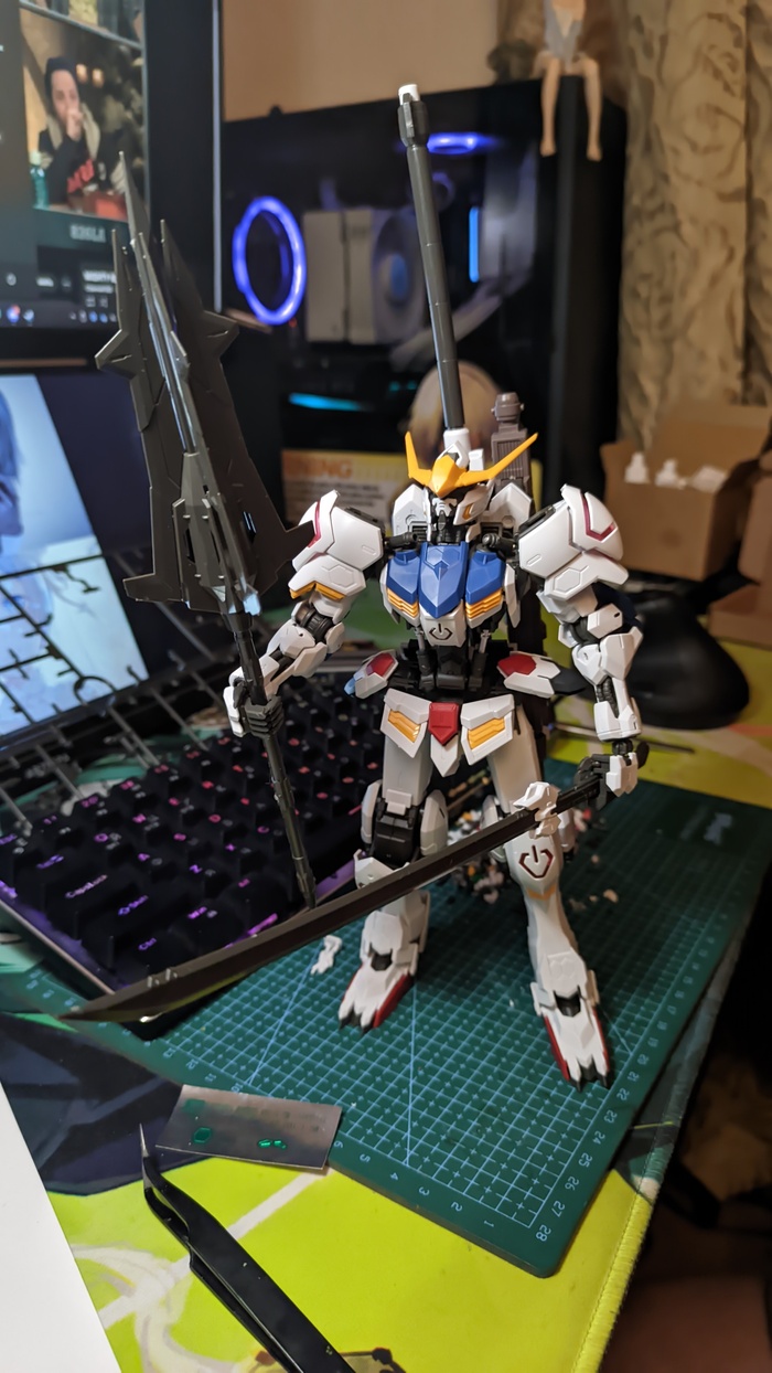 Я пока подготавливаю остальные фигурки под покрас, Жора собирает Гандама (за один вечер, однако) с надзорной помощью котеича.