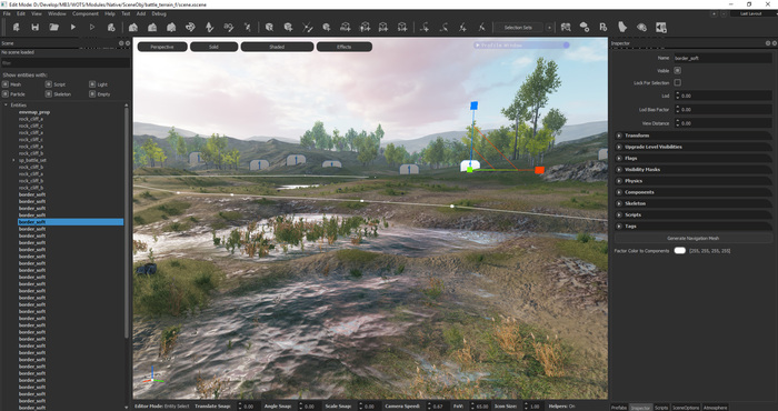 Со слов Тюре, поле боя Bannerlord представляет из себя квадрат размеров в 4 км. Хоть это и гораздо больше, чем в Warband, но на создание такой площади уходит меньше времени. Инструментарий улучшился, а вместе с ним выросли и темпы производства. У художников по ландшафту появилась в распоряжении целая система надстройки уровня с помощью масок, позволяющая совмещать на одном участке сразу несколько уровней развития объекта. К примеру, замки от 1-го до 3-го уровня.