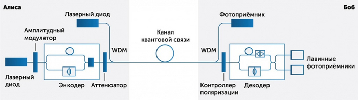 Например, в квантовой криптографии для передачи информации используются квантовые биты, или кубиты, которые могут находиться в состоянии, обозначенном как 0, 1 или суперпозиции 0 и 1 одновременно (квантовый параллелизм).