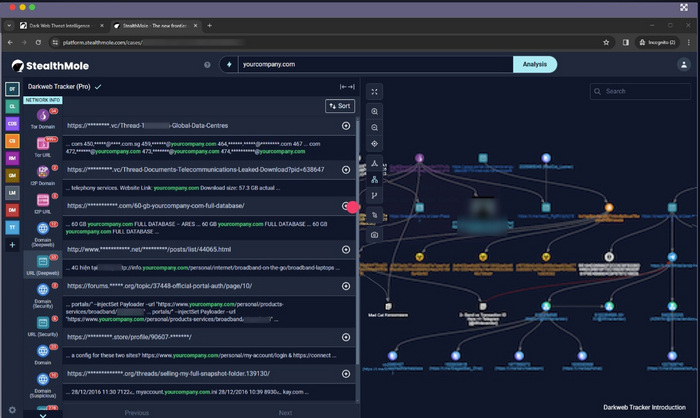 Credential Protection. Дополнительно для отслеживания уже утекших данных, компания предоставляет другое ПО для мониторинга наличия нарушений или утечек учетных данных в даркнете, используя обширный набор данных из даркнета, клиенты получают дополнительную информацию о деталях инцидента с взломом, что позволит незамедлительно принять меры и защитить данные компании. Сервис систематически сканирует форумы, торговые площадки, дампы данных и другие источники, известные своей хакерской деятельностью.